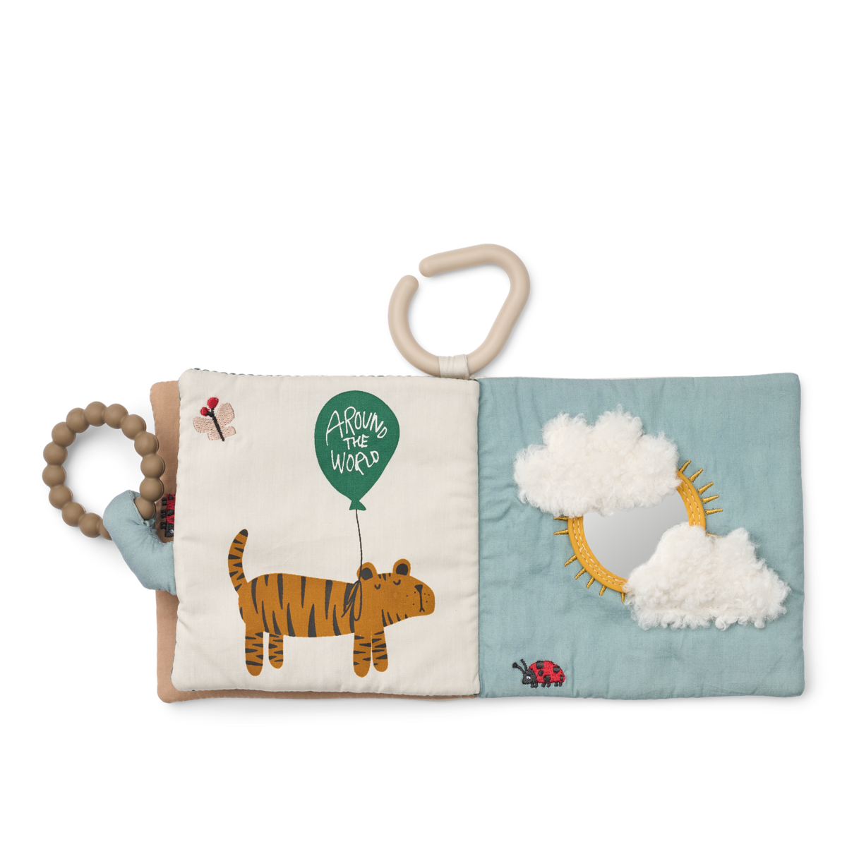 Das Fey Stoff-Activitybuch „Around the World“ ist ein superweiches Baby-Stoffbuch mit niedlichen Tieren – perfekt für erste Entdeckungen ab Geburt. Gefertigt aus recyceltem Polyester, lädt es mit vielen fühlbaren Details zum Greifen, Staunen und Erkunden ein. Ein integrierter Silikon-Beissring, ein kleiner Spiegel und knisternde Stoffe fördern spielerisch die Sinne und machen jede Seite zu einem kleinen Abenteuer – ideal für unterwegs oder als Beschäftigung zu Hause.