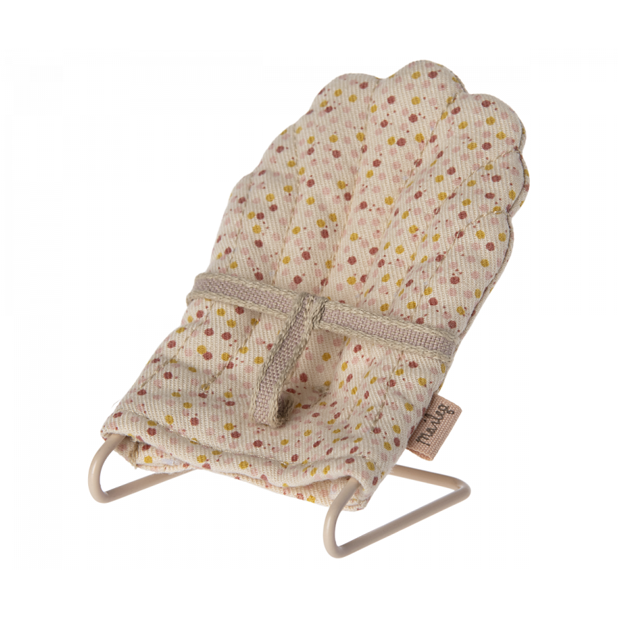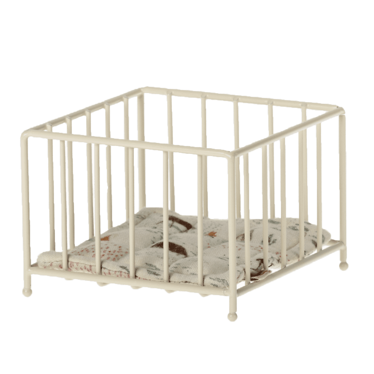 Eine wunderschön gestaltete Wiege aus Metall mit einem weichen Schlafsack und einer Matratze im Inneren. Die Wiege hat eine kleine Blumenprägung am Kopfteil und abgerundete Beine, damit Du die Kleinen in den Schlaf wiegen kannst.
