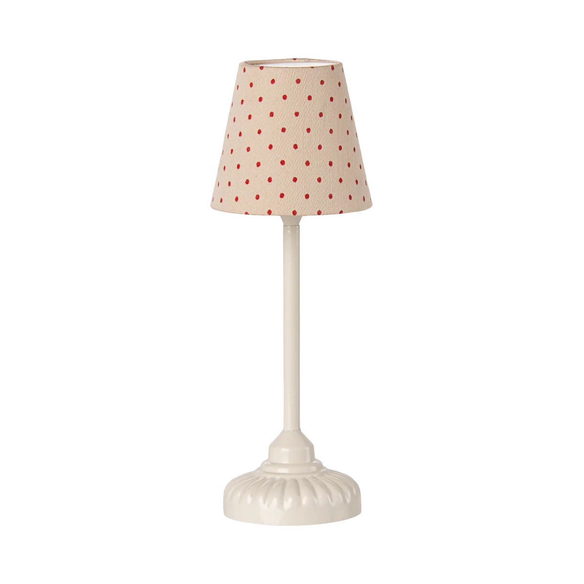 Die schöne Maileg Miniatur-Stehleuchte ist ein Muss. Die Lampe beleuchtet den Raum mit einem sanften Ton - denke daran, das Licht auszuschalten, wenn die Maileg Freunde und Du ins Bett gehen. Die Batterie kann von einem Erwachsenen gewechselt werden.