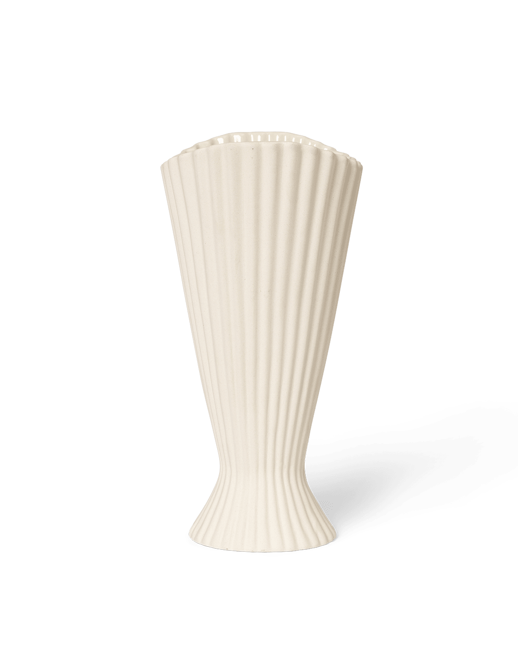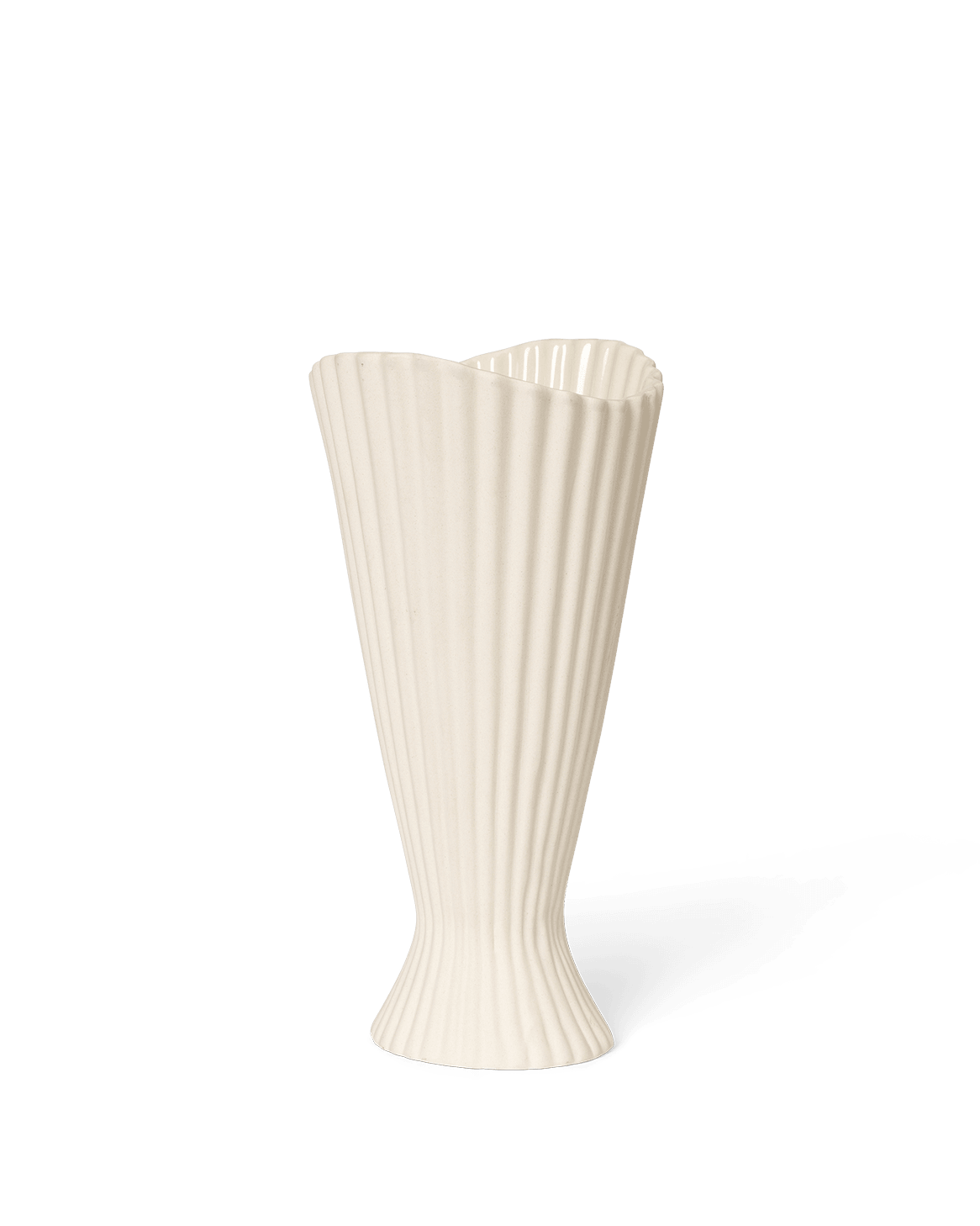 Die Fountain Vase zieht mit ihrer skulpturalen Silhouette und weichen Falten sofort alle Blicke auf sich. Inspiriert von klassischen Brunnenformen, bringt sie eine harmonische und zugleich elegante Note auf Tisch, Sideboard oder Fensterbank – ob gefüllt mit frischen Blumen oder als dekoratives Objekt für sich allein.