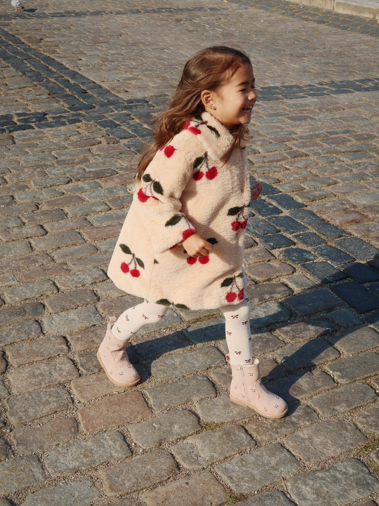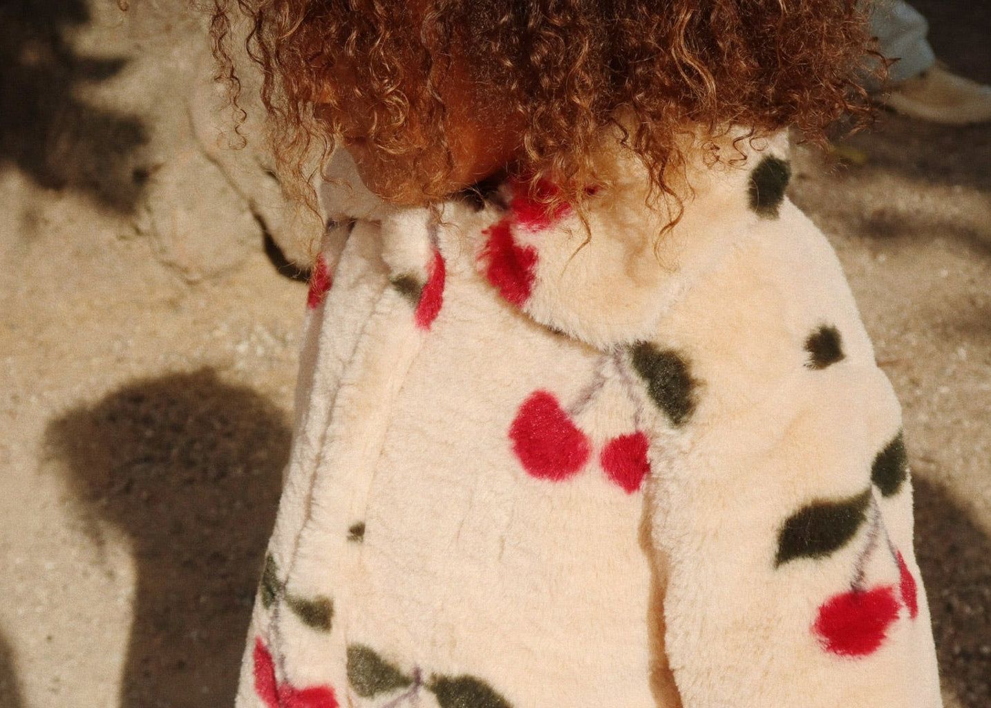Der Fuzzie Mantel Ma Grande Cerise ist der perfekte Begleiter für kalte Tage. Mit seinem weichen Plüschmaterial, dem runden Kragen und den praktischen Druckknöpfen vereint er Gemütlichkeit mit einem charmanten Design. Seitentaschen bieten Platz für kleine Schätze oder warme Hände – ein Mantel, der Funktion und Stil spielerisch kombiniert.