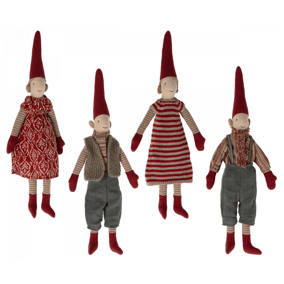 Die Mailegs Pixy Kollektion enthält viele verschiedene Stile - alle in wunderschöne Weihnachtskleidung aus exklusiven Materialien. Sie sind in jeder Weihnachtsdekoration entzückend und können über Größen und Kollektionen hinweg kombiniert werden.