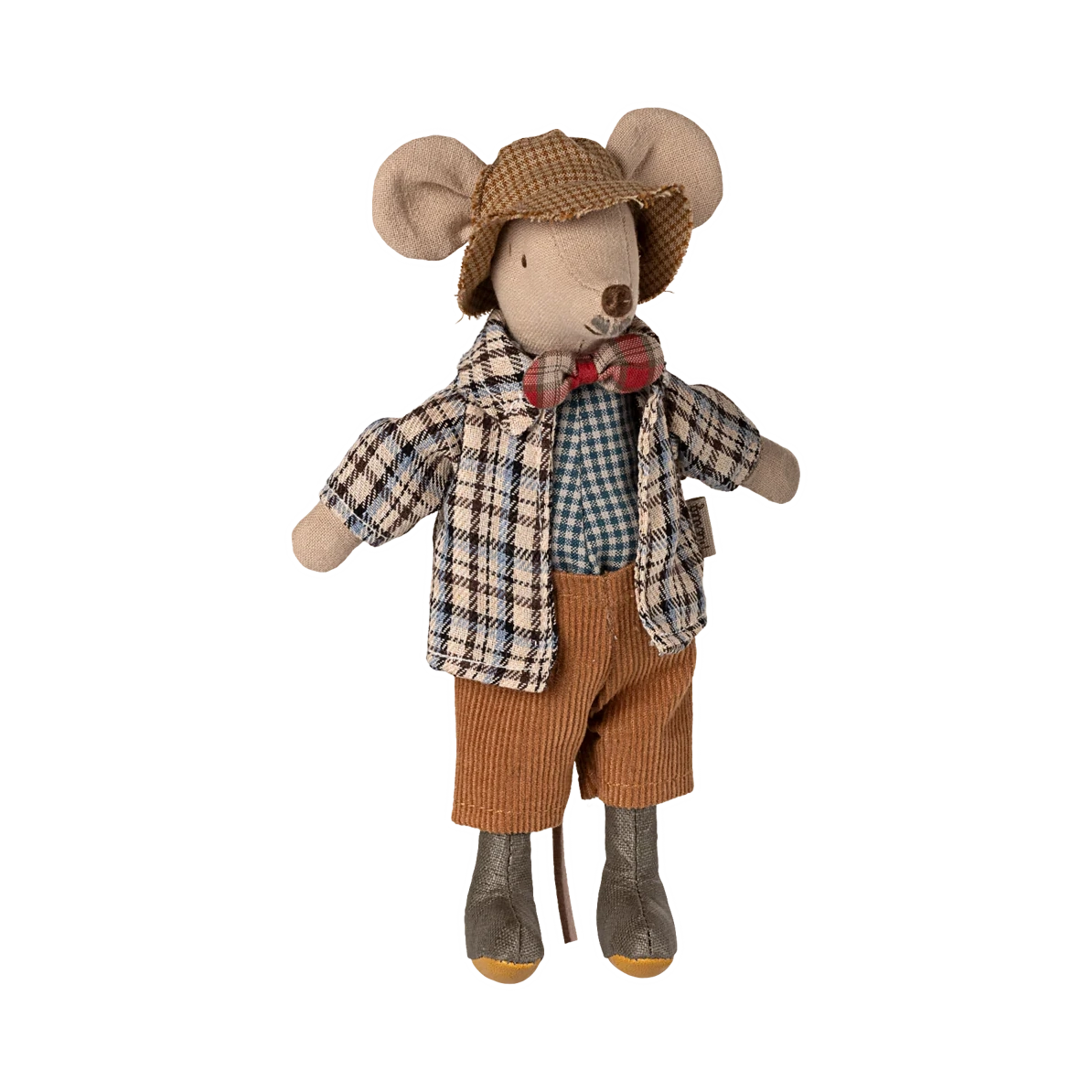Der Grossvater sieht sowohl weise als auch nett aus - er trägt Gummistiefel, Schmetterling, Hose und Jacke und ist immer bereit, dich mit all seinen vielen Geschichten aufzuheitern. Die Maus hat Magnete in ihren Händen.