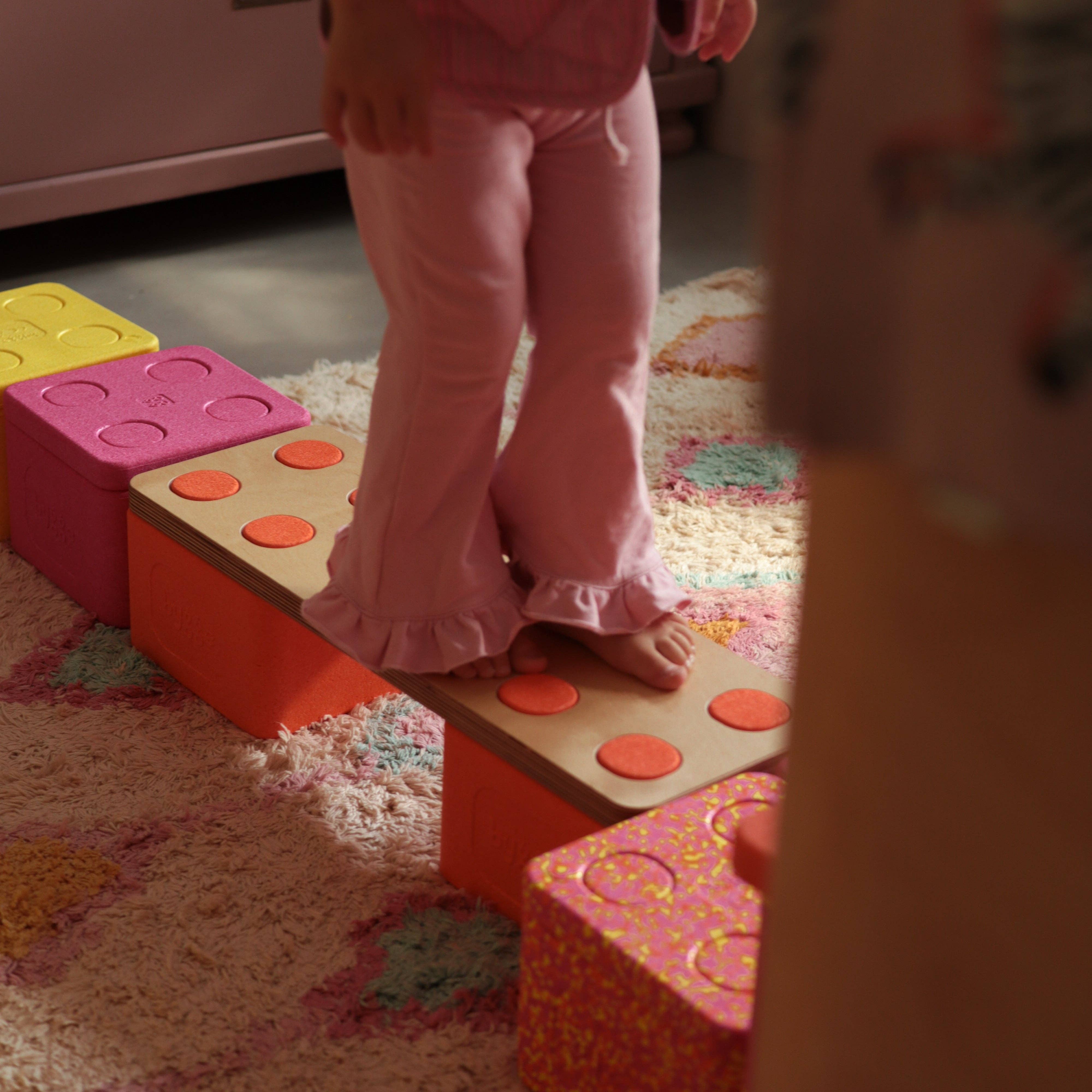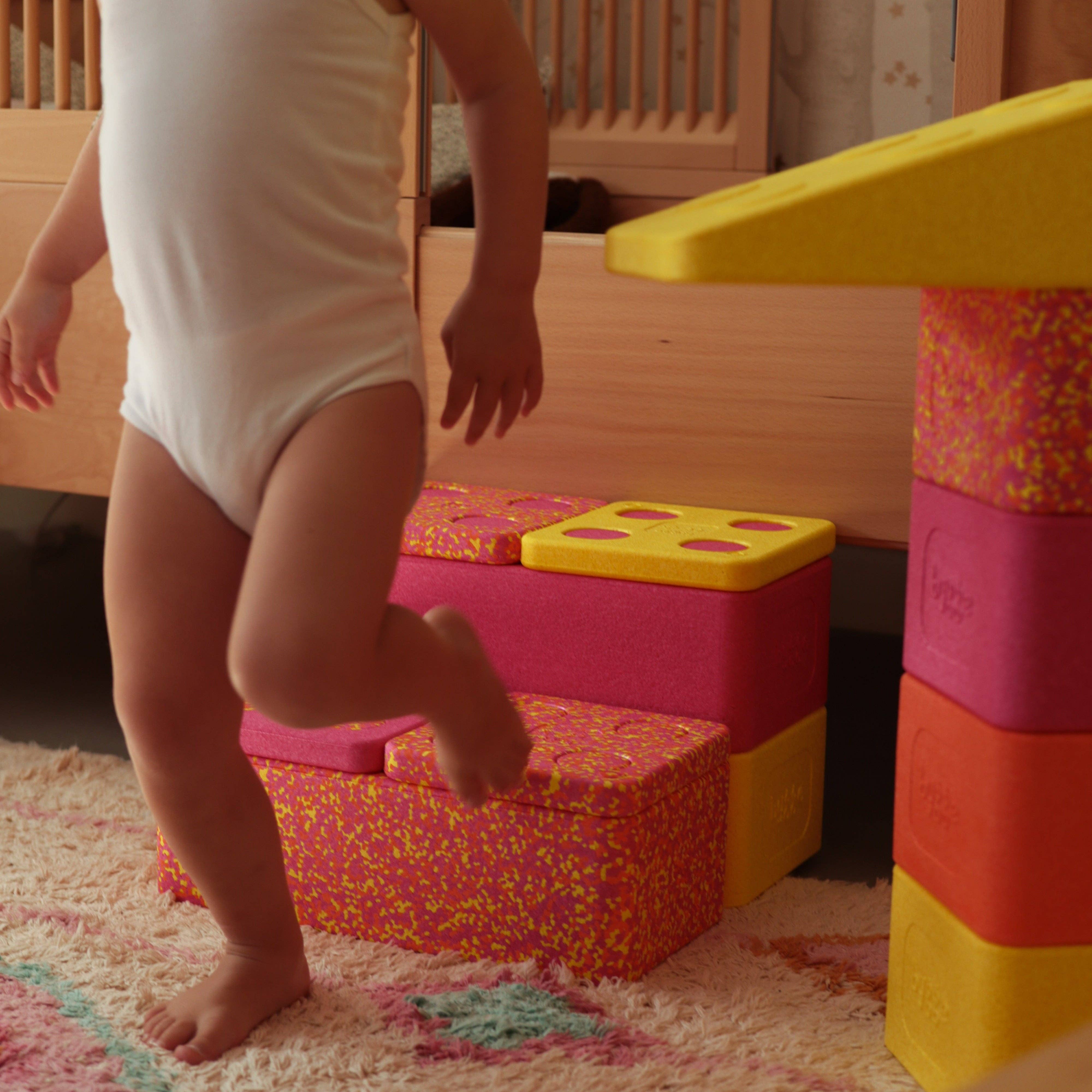 Die richtige Mischung macht’s! Das FARBESPIL Starter-Set bietet von allem ein bisschen und ist damit der perfekte Einstieg in die vielseitige Bausteinwelt von Bygge®. Unzählige Spiele, Konstruktionen und Parcours lassen sich damit im Handumdrehen umsetzen – vom stabilen Tritt für Waschbecken und Küche bis hin zu zwei kleinen Sitzbänkchen.
