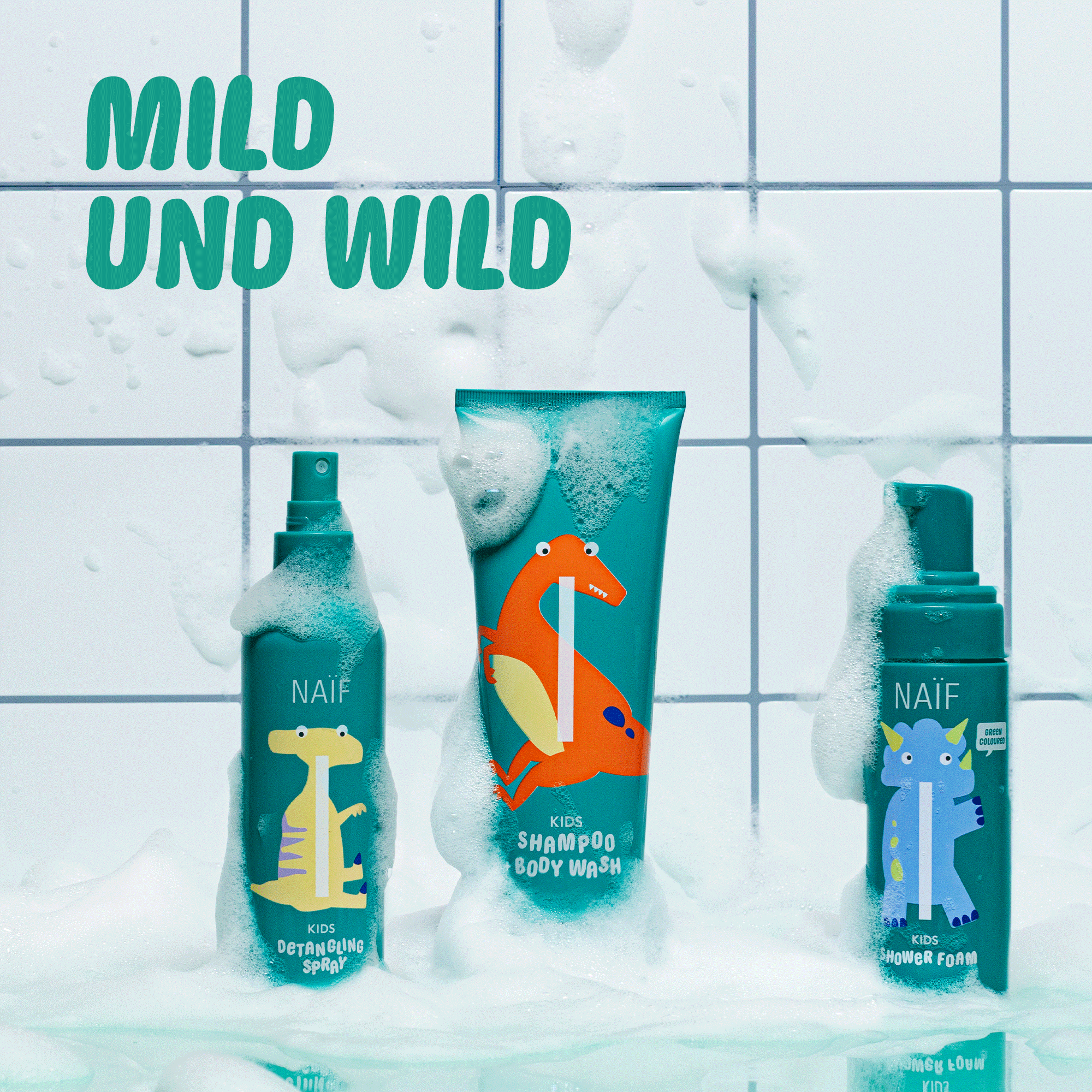 Mit dem 2-in-1 Kids Shampoo & Duschgel von Naïf wird die tägliche Pflege zum Kinderspiel. Die milde Formel reinigt Haare und Körper gleichzeitig – ganz ohne Tränen, Reizstoffe oder Mikroplastik. Natürliche Inhaltsstoffe wie Betain aus Zuckerrüben spenden Feuchtigkeit und schützen die empfindliche Kinderhaut vor dem Austrocknen. Der frische, fruchtige Limettenduft sorgt dabei für gute Laune in der Badewanne.