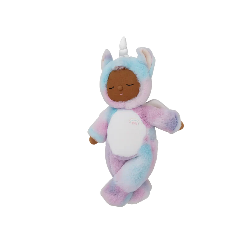Uli das kleine Einhorn galoppiert fröhlich durchs Rainbow Realm, stellt unzählige Fragen und jagt Regenbögen, die einfach nicht stillhalten wollen. Mit weichem Pastellplüsch und funkelndem Horn ist Uli ein magischer Begleiter für kleine Hände – immer bereit für Kuscheleinheiten, Abenteuer und ein bisschen Regenbogen-Schabernack.