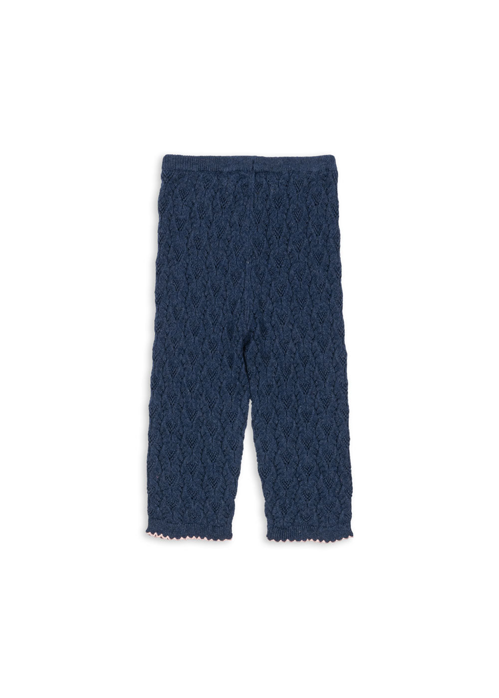 Diese gestrickte Hose vereint gemütlichen Komfort mit feinen, romantischen Akzenten. Der zarte Rosettenstrick und die gestickten Rosen an den Beinabschlüssen verleihen ihr einen besonders charmanten Look. Die weiche Materialmischung aus Baumwolle, Wolle und Kaschmir sorgt für ein angenehm warmes Tragegefühl – ideal für kühlere Tage.