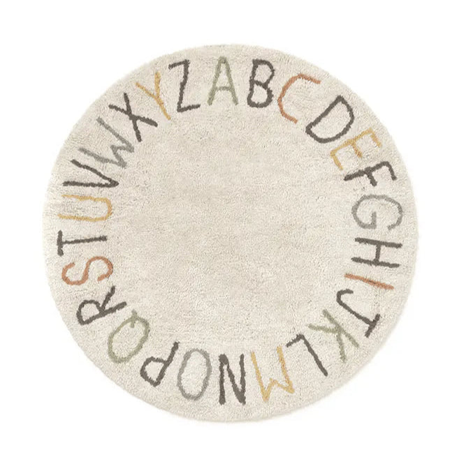 Lernen, spielen und dekorieren in einem: Der waschbare ABC Teppich macht das Alphabet kinderleicht erlebbar. Inspiriert vom beliebten ABC-Design, bringt dieser runde Teppich Buchstaben auf eine natürliche Basis und macht jeden Raum zu einem interaktiven Lernplatz.