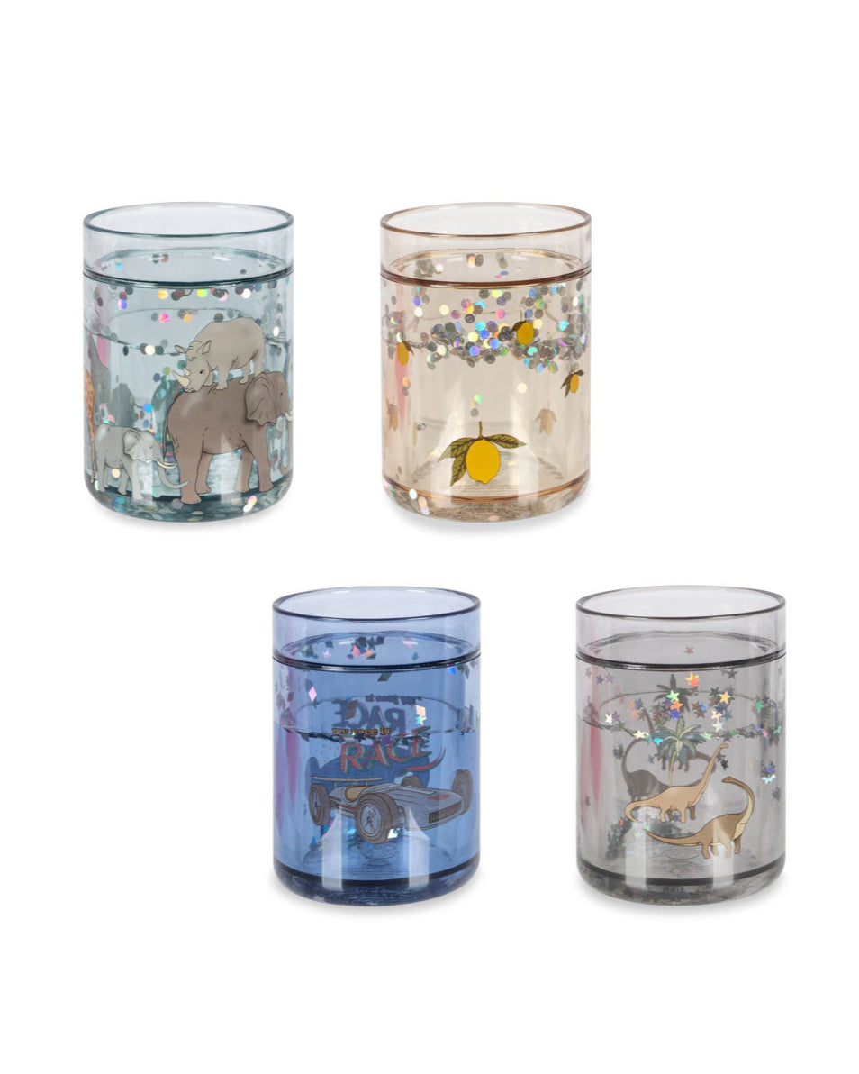 Entdecke das 2er-Pack Glitzer-Trinkbecher von Konges Slojd in glänzendem Dino-Design. Hergestellt aus hochwertigem PCTG, PET und destilliertem Wasser, haben sie eine Einheitsgröße von Ø 6,5 cm x H 9 cm. Verzaubere deine kleinen Gäste mit einem funkelnden Geschmackserlebnis!