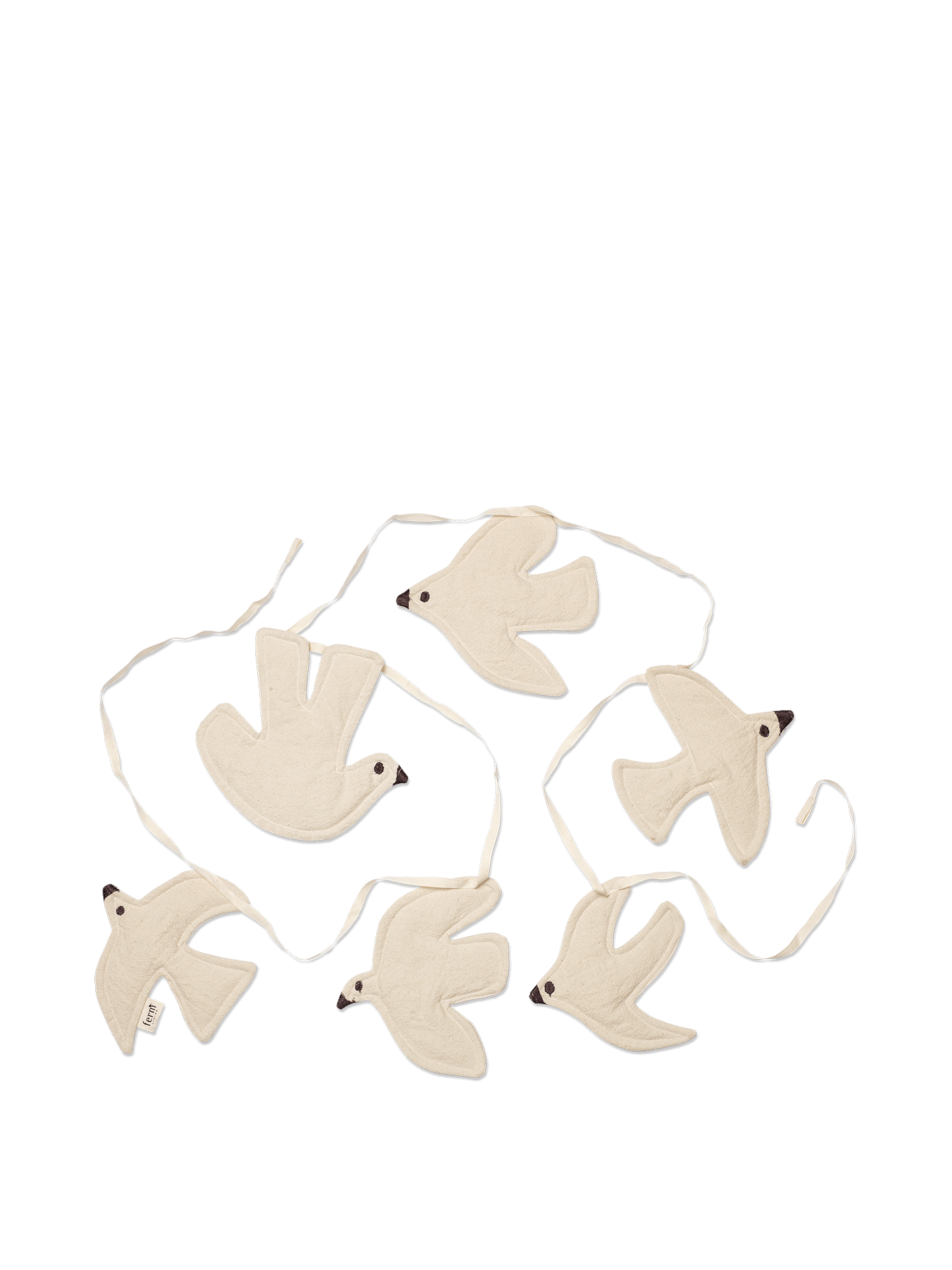 Die Swif Bird Girlande verleiht dem Kinderzimmer eine sanfte, beruhigende Atmosphäre. Hergestellt aus 100 % Bio-Baumwolle und gefüllt mit recyceltem Polyester, schweben die liebevoll gestalteten Vögel an einer 220 cm langen Baumwollkordel und sorgen für ein dekoratives Highlight. Die weiche, gewaschene Baumwollstruktur macht die Girlande nicht nur optisch ansprechend, sondern auch taktil erlebbar.