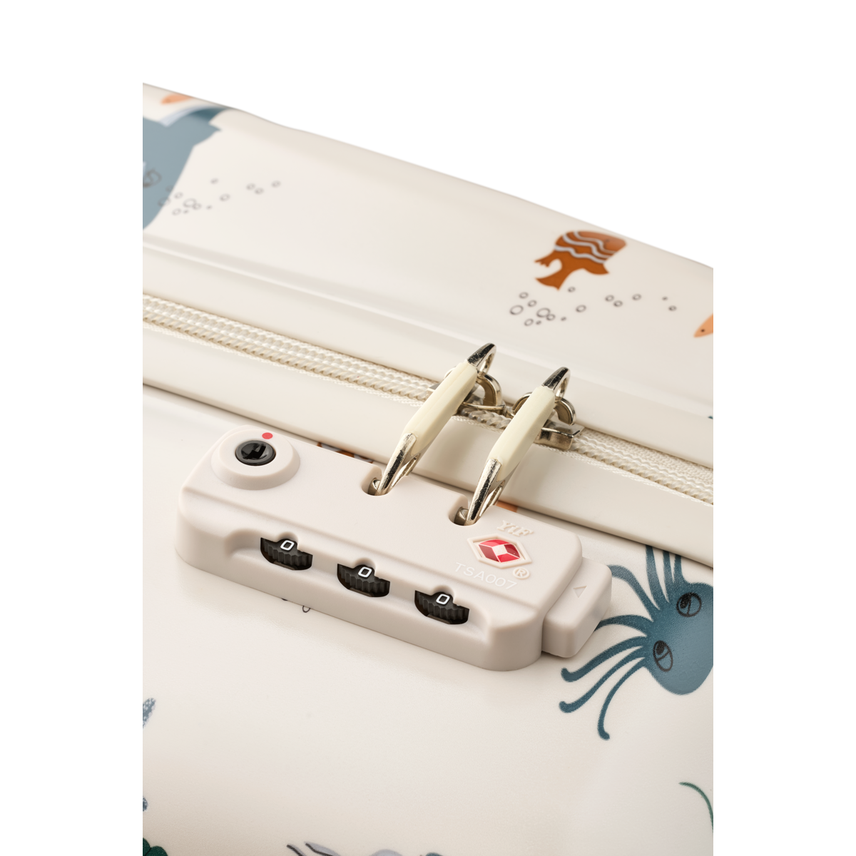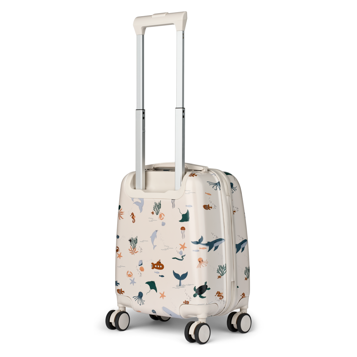 The Norelle suitcase by Liewood is the perfect must-have for families travelling with children. This hard-shell children's suitcase was specially designed for young travellers and impresses with its robust material, well-thought-out interior layout and stylish design. Thanks to 4 wheels with 360° rotation, a telescopic handle and a carrying handle, it is particularly easy to manoeuvre. With a 30-litre capacity and hand luggage-friendly format, it is ideal for weekend trips, holidays and first flights.