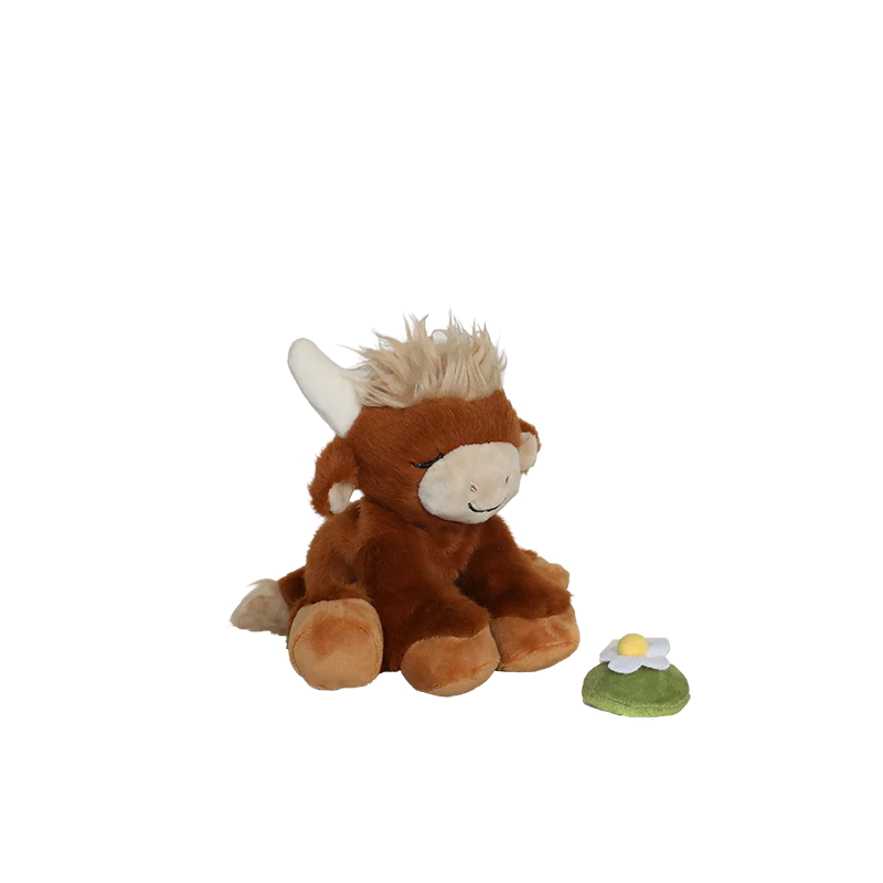 ✔ Kuscheltier Highland Cow mit magnetischem Mund – hält den Blumen-Schnuller sicher fest