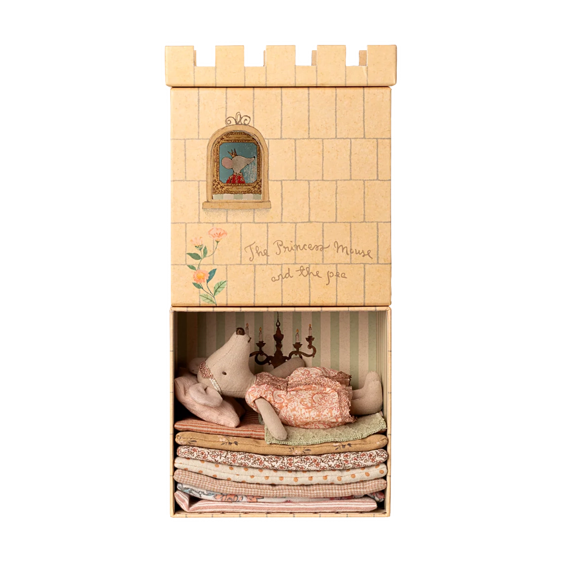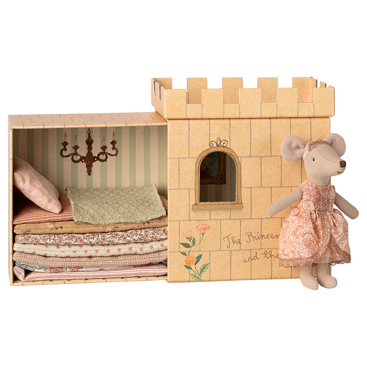 Ein klassischer Maileg-Artikel. Das Märchen "Die Prinzessin auf der Erbse" ist die Inspiration hinter diesem Spielset. Das Set enthält ein Schloss mit Matratzen, eine Erbse & eine Prinzessin Maus. Kombiniere das Set mit anderen Mäusen für mehr Spiel.