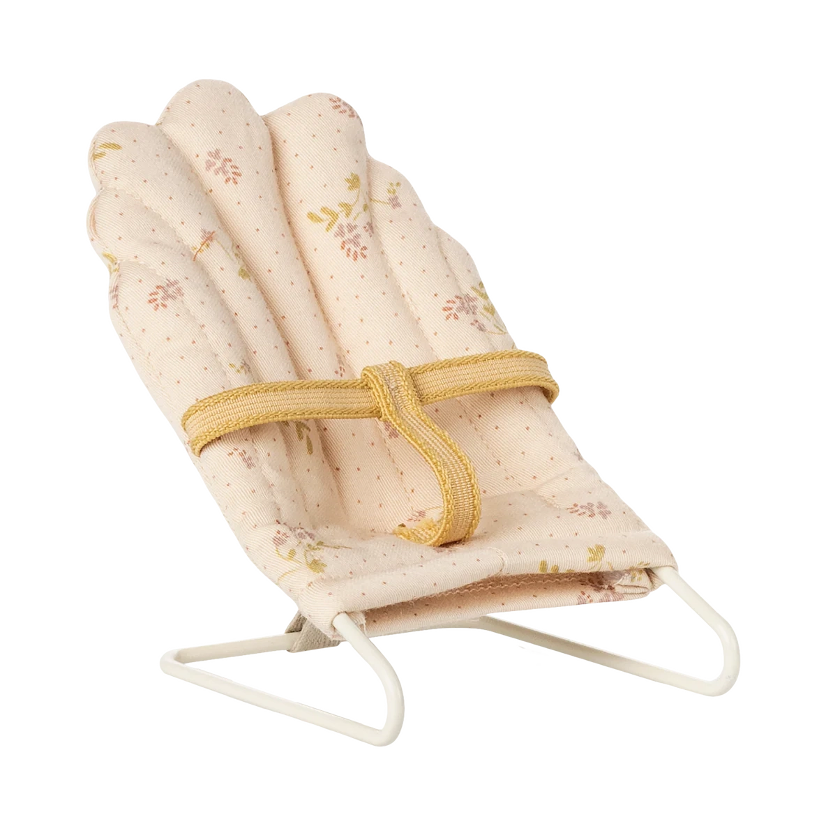 With this babysitter it is easy to put your little friends to sleep. The base is made of metal and covered with the most beautiful fabric. The chair fits perfectly for micro-sized rabbits and bunnies and the Teddy Baby.