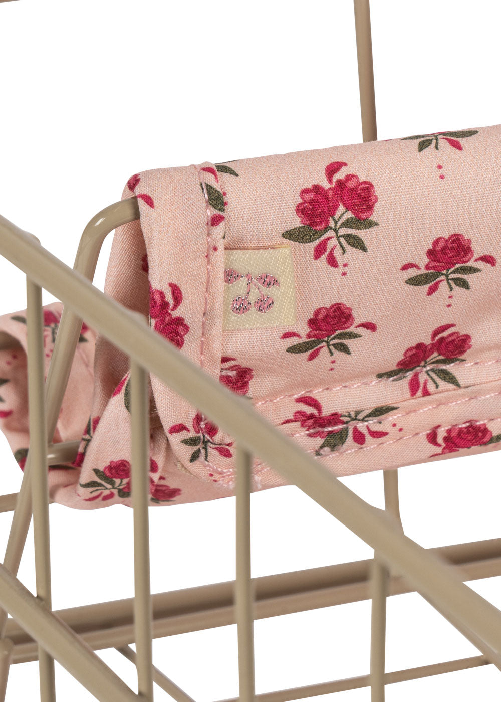 Role-playing is twice as fun with the Konges Sløjd children's shopping cart. Whether shopping in the nursery's supermarket or reenacting everyday life, the cart is a stylish and functional companion for little shoppers. Thanks to its sturdy iron frame, swivel front wheels, and soft fabric basket, it's robust, easy to maneuver, and sustainably manufactured. Foldable for easy storage, it offers fun and organization at the same time.