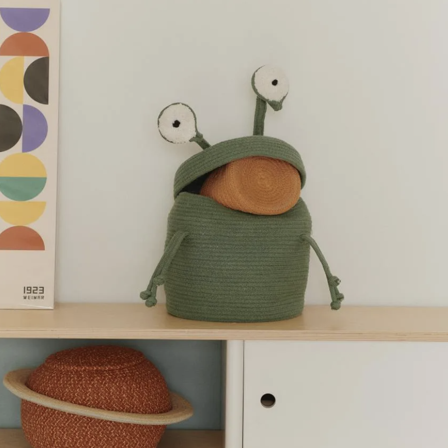 Le panier de rangement Alien Zog met de l'ordre dans la chambre de n'importe quel enfant, et ce, avec une bonne dose de fun ! Avec son design extraterrestre ludique, il deviendra vite le chouchou des petits, parfait pour ranger jouets, peluches ou linge. Grâce à son format pratique, il s'intègre parfaitement à n'importe quelle pièce et apporte une touche unique.
