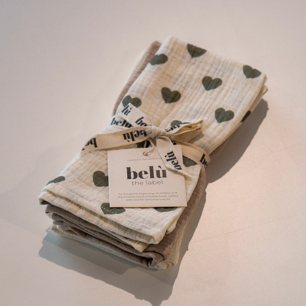 Lot de 3 langes en mousseline à motif cœur vert