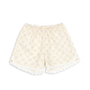 Le short Coeur allie détails romantiques et légèreté estivale. Ses délicates finitions en dentelle et ses volants espiègles lui confèrent un charme irrésistible, tandis que sa coupe décontractée assure un confort optimal. Idéal pour les chaudes journées d'aventure !