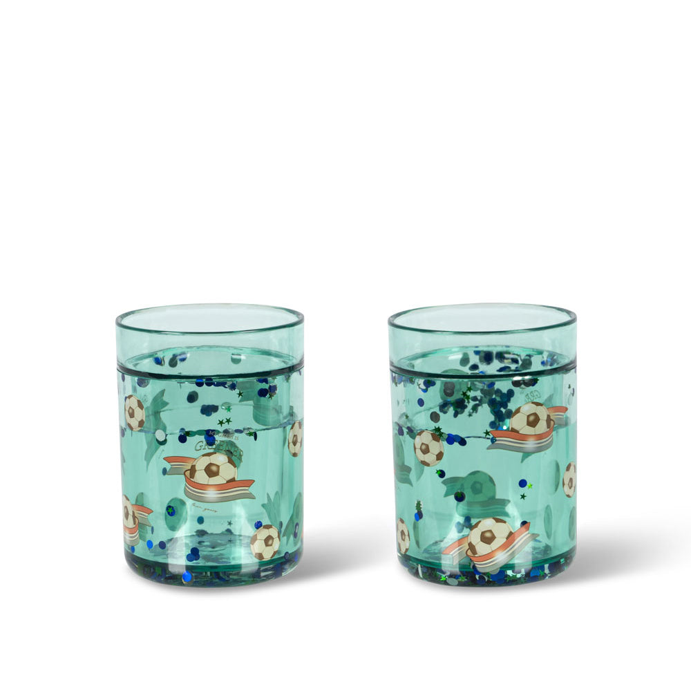 Découvrez le pack de 2 gobelets à paillettes de Konges Slojd au design dinosaure brillant. Fabriqués à partir de PCTG, PET et eau distillée de haute qualité, ils ont une taille standard de Ø 6,5 cm x H 9 cm. Enchantez vos petits invités avec une expérience gustative pétillante !