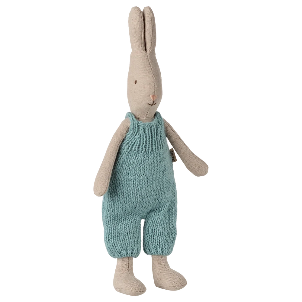 Ein klassisches Kaninchen aus weichen Naturmaterialien, das ein schönes Griffgefühl und Aussehen hat. Das Kaninchen in Größe 1 passt in das Puppenhaus und zu allen Möbeln in Größe Mini und Miniatur.