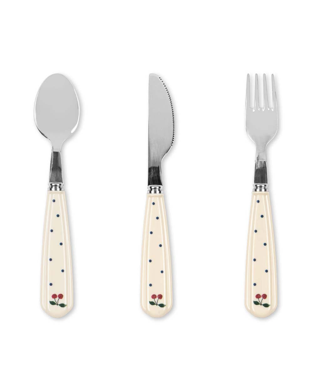 Le set de couverts pour enfants Navy Dot de Konges Sløjd allie fonctionnalité et design ludique. Avec ses pois délicats et ses manches ergonomiques, il s'adapte parfaitement aux petites mains. Fabriqué en acier inoxydable robuste avec des manches en PCTG de haute qualité, il accompagne les enfants avec amour lors de leurs premiers repas : sûr, durable et élégant.