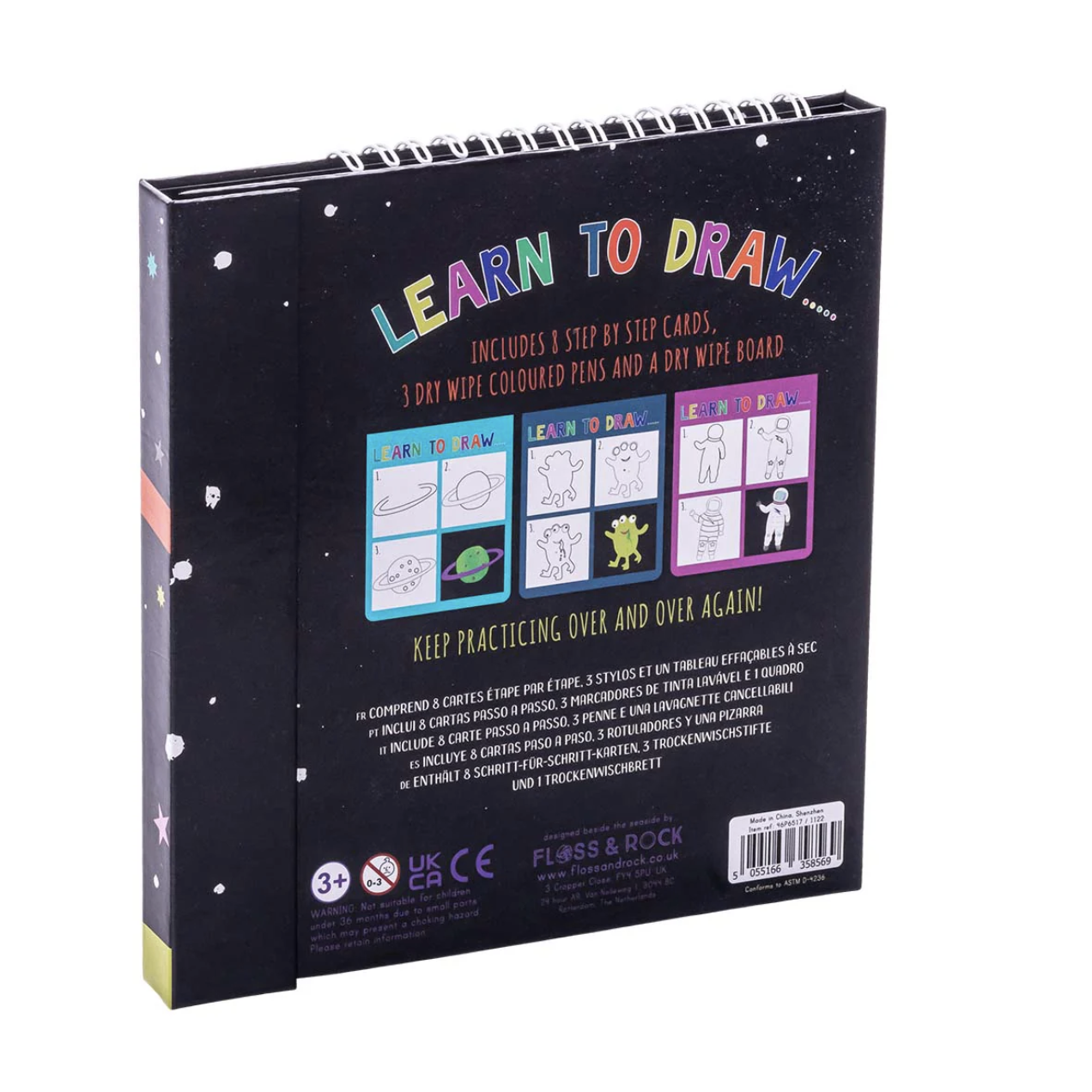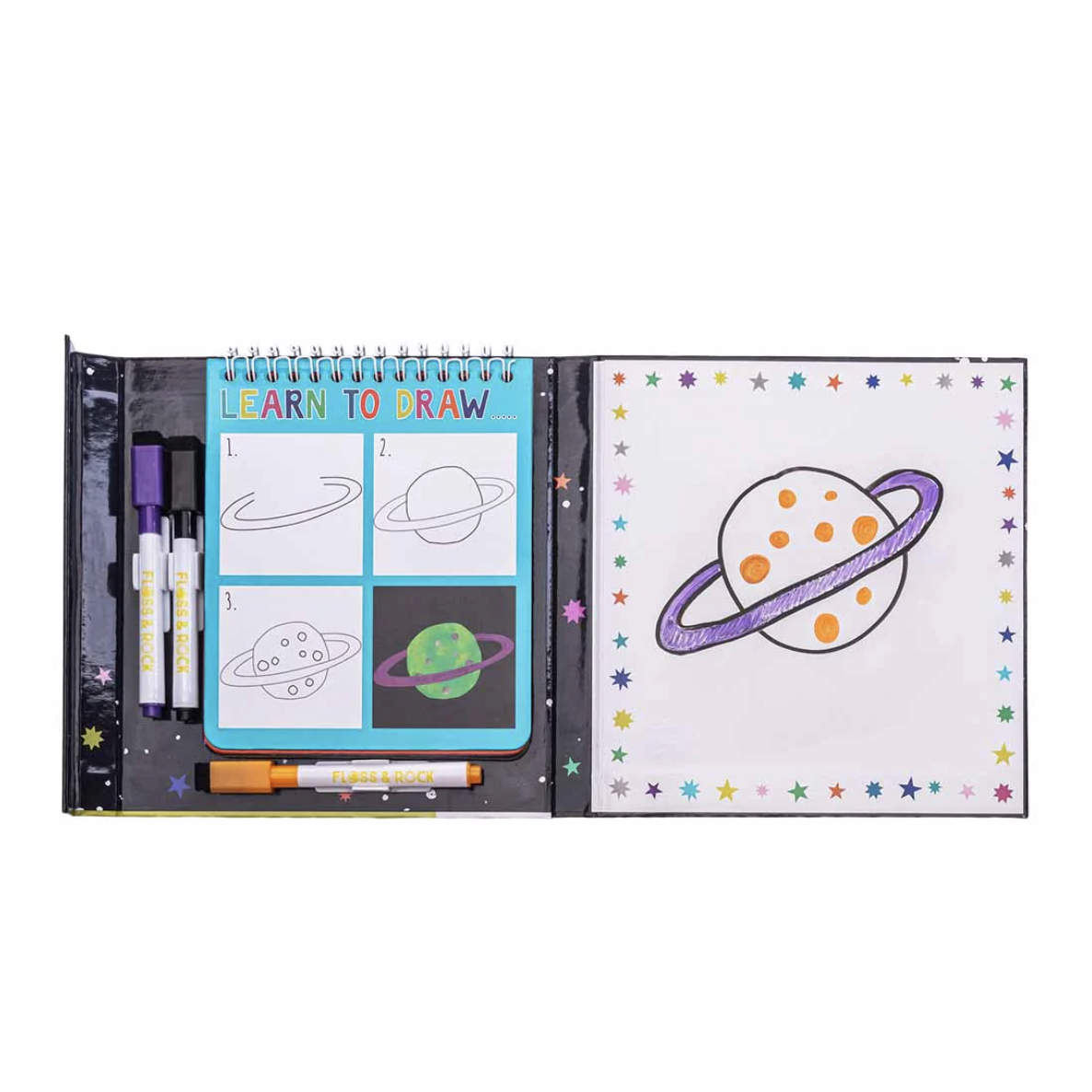 Avec le coffret Apprendre à dessiner l'espace , les enfants apprendront à dessiner leurs propres œuvres spatiales de manière ludique ! Le livre contient 8 pages robustes et effaçables à sec, avec des instructions étape par étape pour dessiner des fusées, des planètes ou des astronautes en seulement trois étapes faciles. Grâce aux trois feutres de couleur avec gomme, les dessins peuvent être redessinés à l'infini : idéal pour les petits artistes et les grandes aventures imaginatives.