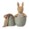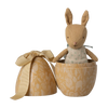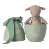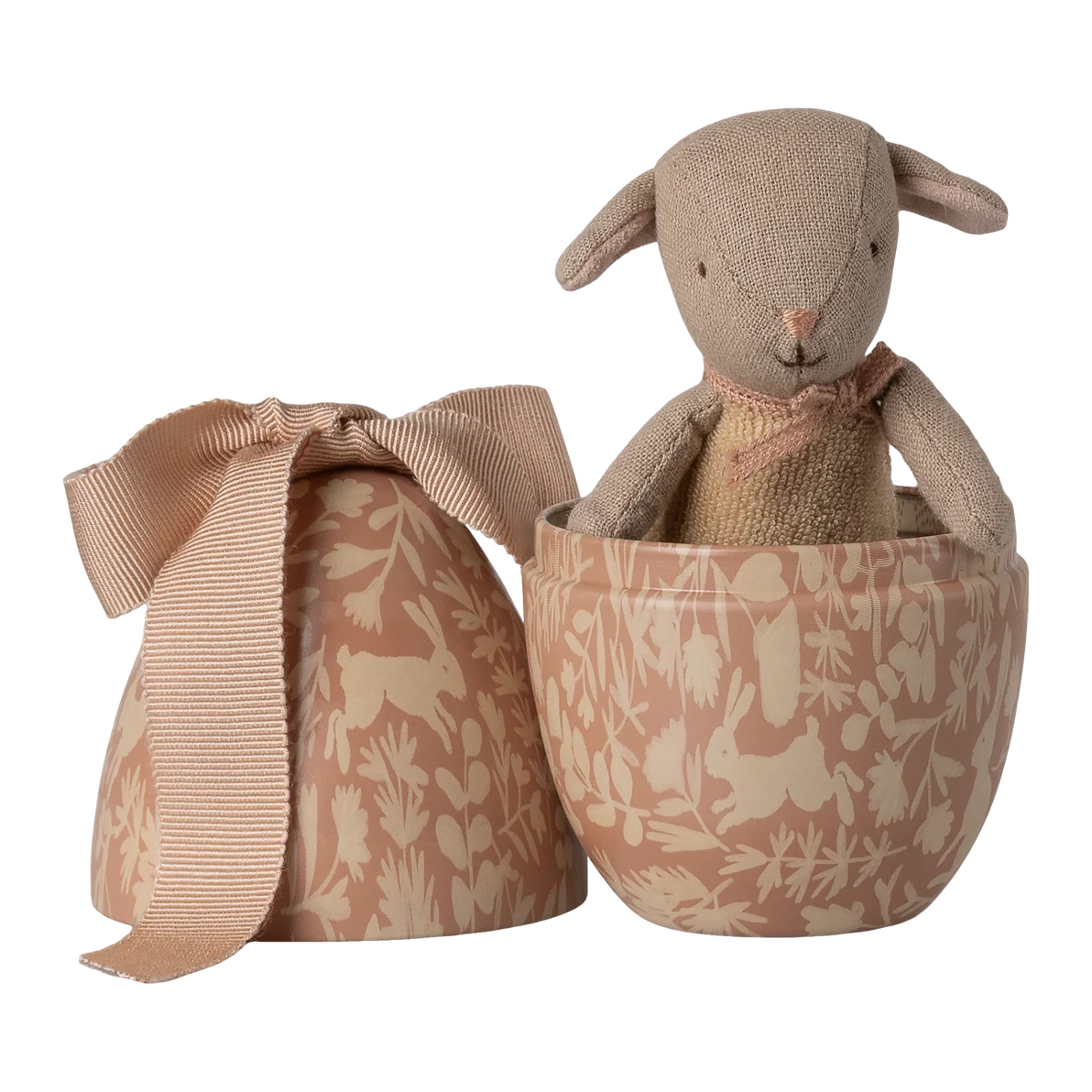 À l'intérieur de cet œuf en métal, orné d'un joli motif et surmonté d'un grand nœud, se cache un lapin vêtu d'un costume à pois. L'agneau a des aimants dans les pattes pour pouvoir s'accrocher à l'œuf.