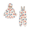 - Pantalon de pluie : Jusqu'à la taille 4 ans : avec bretelles pour un maintien optimal. À partir de la taille 5-6 ans : avec ceinture élastique pour un enfilage et un retrait faciles.