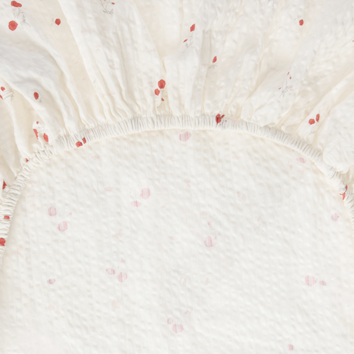 Le drap-housse Poppy en seersucker associe les imprimés emblématiques de Garbo&Friends à la texture unique du seersucker. Confectionné en coton biologique doux certifié GOTS, sa surface légèrement froissée apporte une belle profondeur au motif tout en garantissant un sommeil aéré et confortable.