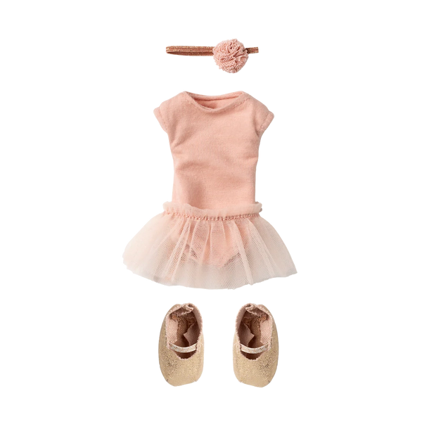 Das perfekte Set für eine Ballettstunde. Das Set enthält Anzug, Rock und Schuhe und passt dem Hasen Größe 2.