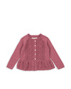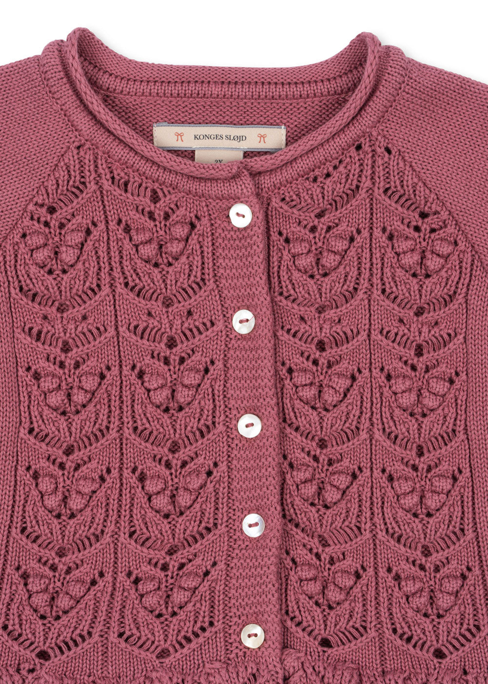 Der Cabby Strick-Cardigan ist ein zarter Allrounder für die Übergangszeit und festliche Anlässe. Mit seinem feinen Strickmuster, verspielten Rüschendetails und gerollten Säumen verleiht er jedem Outfit eine romantische Note. Die Perlmuttknöpfe auf der Vorderseite runden das Design liebevoll ab.