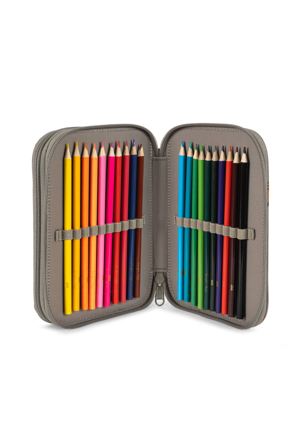 Das Clover Maxietui von Konges Sløjd ist ein klassisches und geräumiges Federmäppchen mit drei separaten Fächern. Es bietet ausreichend Platz für Stifte, Marker, Radiergummis und Lineale. Ein zusätzliches Innenfach mit Reißverschluss sorgt für noch mehr Ordnung.