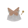 Mit dem Feen-Outfit „Fairy“ aus dem Rainbow Realm verwandeln sich Dinkum Dolls in funkelnde Feenwesen. Das Outfit besteht aus einem glitzernden Tüllkleid mit sternbesetzten Lagen und zarten Flügeln aus Blush-Velvet – perfekt für märchenhafte Momente. Der herzförmige Zauberstab mit goldenem Elastikband lässt sich leicht an Dinkum Doll Händen befestigen und verleiht jedem Spiel einen Hauch von Magie.