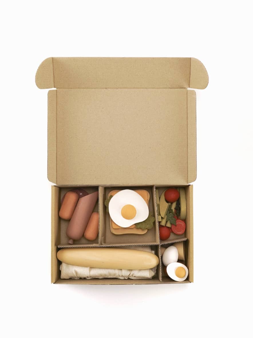 Das Frühstück Spielzeug-Set aus Holz bietet eine wunderschöne Auswahl an liebevoll gestalteten Frühstücksgerichten – ideal für kleine Köch:innen, Café-Betreiber:innen oder fantasievolle Rollenspiele in der Kinderküche. Die angenehm geschliffenen Holzteile liegen perfekt in kleinen Händen und sind mit ungiftiger Farbe auf Wasserbasis bemalt.