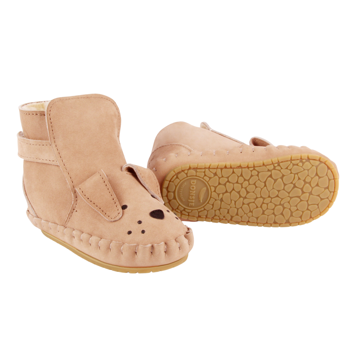 Ein tierisch süßer Auftritt! Die Kapi Classic Boots "Dog" von Donsje verbinden einzigartiges Design mit hochwertigen Materialien. Mit ihren liebevollen Hundeface-Details und den typischen Donsje-Ohren sind sie nicht nur ein echter Hingucker, sondern auch superbequem und funktional. Dank rutschfester Gummisohle (ab Gr. 12–24 M) und weichem Futter bieten sie kleinen Füßen Schutz und Komfort bei jedem Schritt.