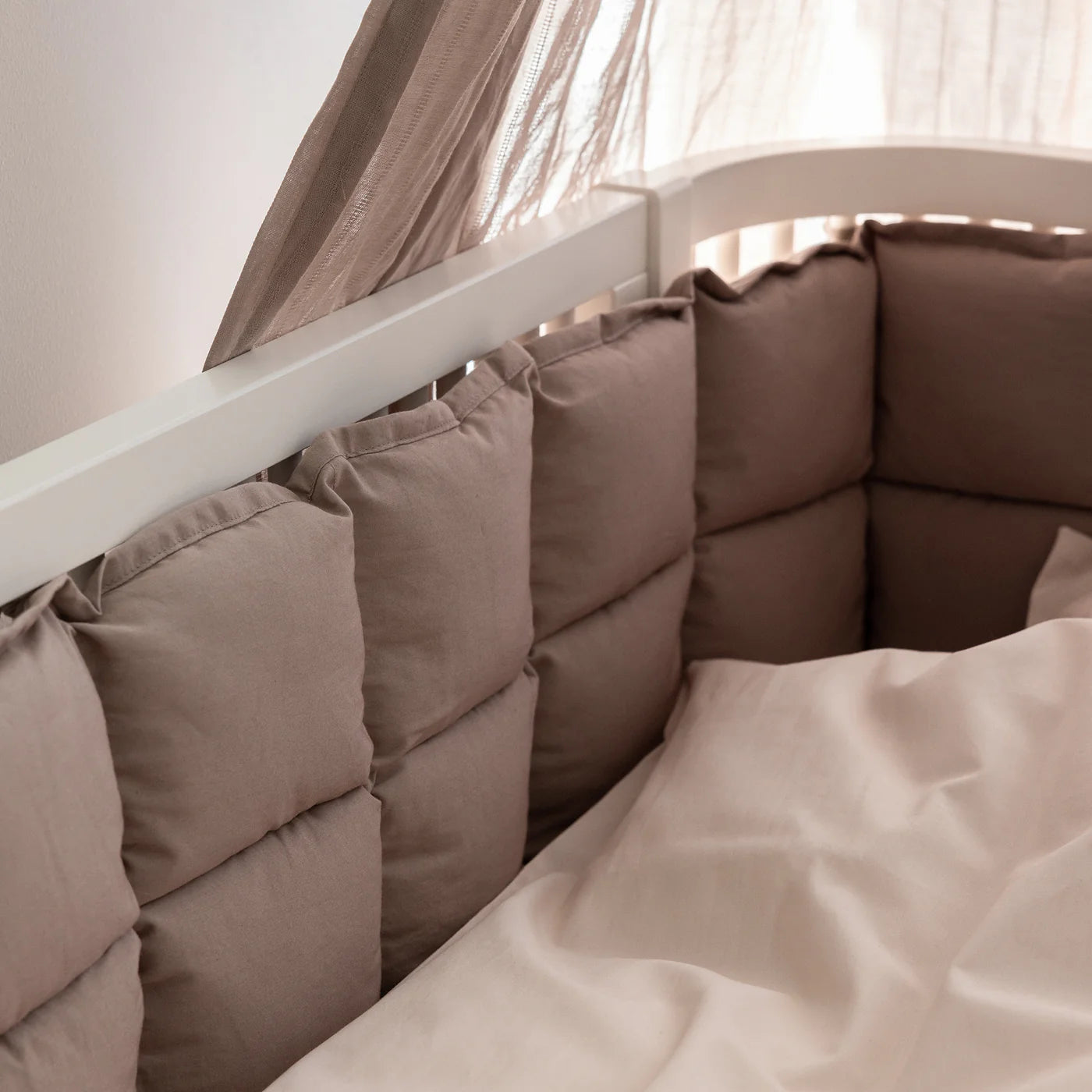 Dieses seidenweiche Bettnestchen aus Kapokfaser passt perfekt in das Sebra Bett, Baby & Jr., sowie in Standard-Kinderbetten mit den Maßen 60 × 120 cm. Dank der flexiblen Länge lässt es sich auch problemlos an kleinere Betten anpassen, indem man es z. B. am Fußende überlappend einlegt.