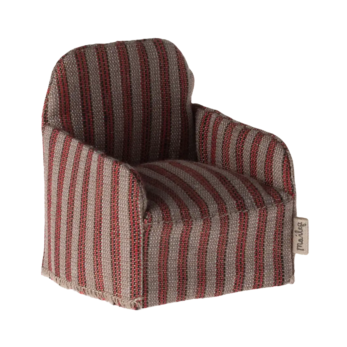 Ein perfekter Ort für Deine kleinen Maileg-Freunde, um sich auszuruhen. Er passt gut in das Maileg Lebkuchenhaus. Der Stuhl wird flach verpackt geliefert und ist leicht zu falten und zu montieren.