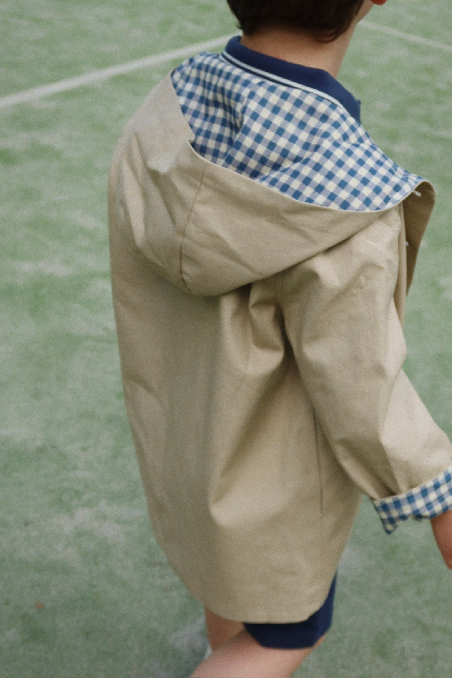 Der Trenchcoat Oxford Tan ist ein klassischer Mantel aus Baumwolle mit geradem Kragen, praktischen Seitentaschen und durchgehender Knopfleiste. Das karierte Innenfutter und die weiche Kapuze machen ihn zum idealen Begleiter für Übergangszeiten. Ein zeitloses Must-have, das sich wunderbar weitervererben lässt – von Generation zu Generation.